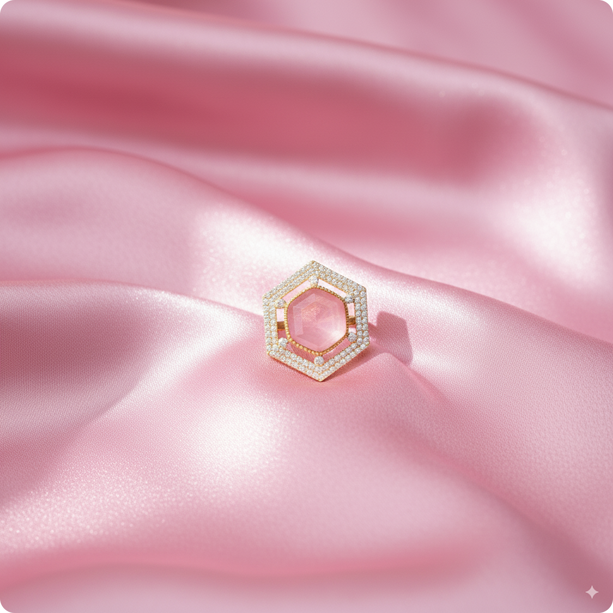 π Bold hexagon-cut pink gemstone centerpiece