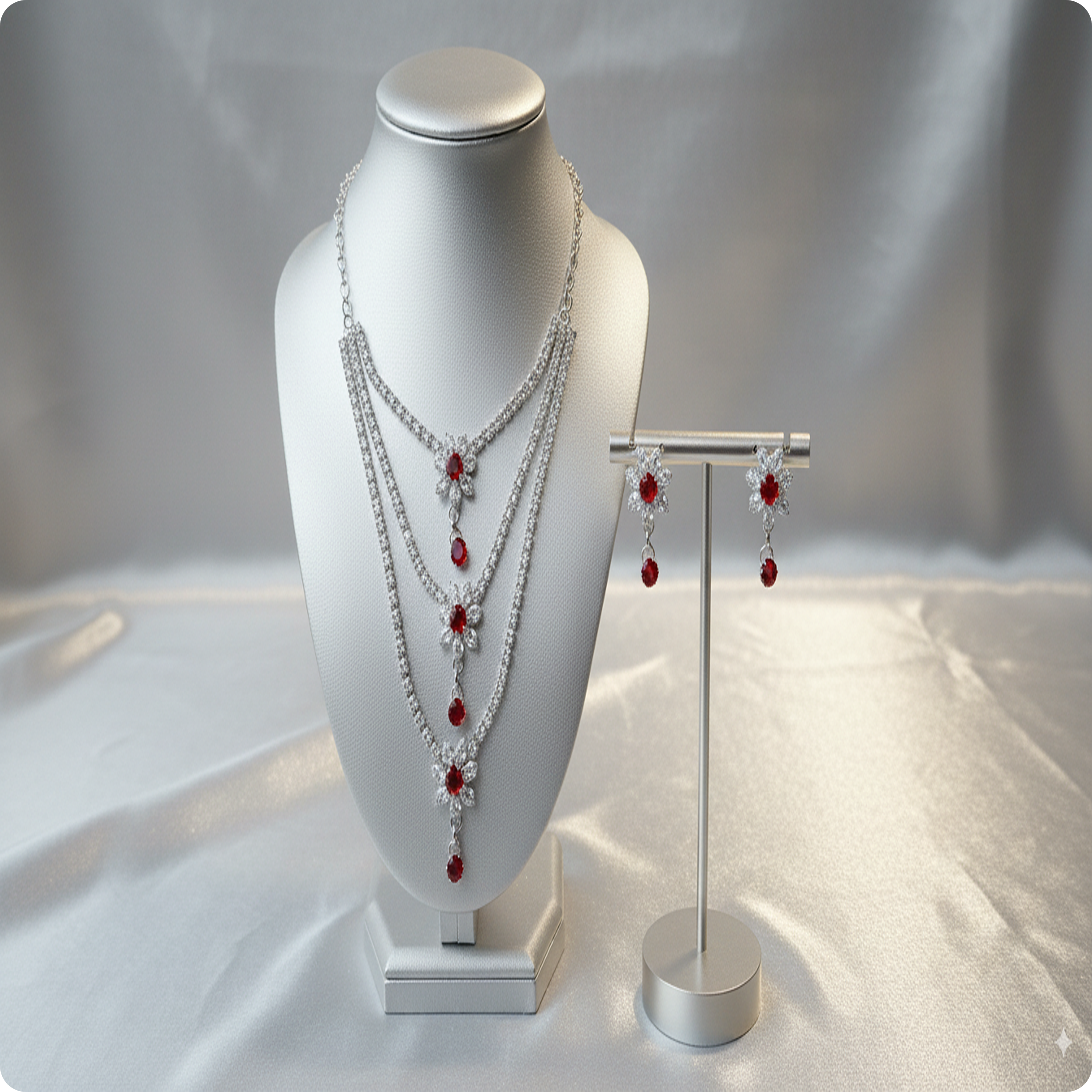 Multi Layer Red Stones Necklace | Elegant Statement Jewelry