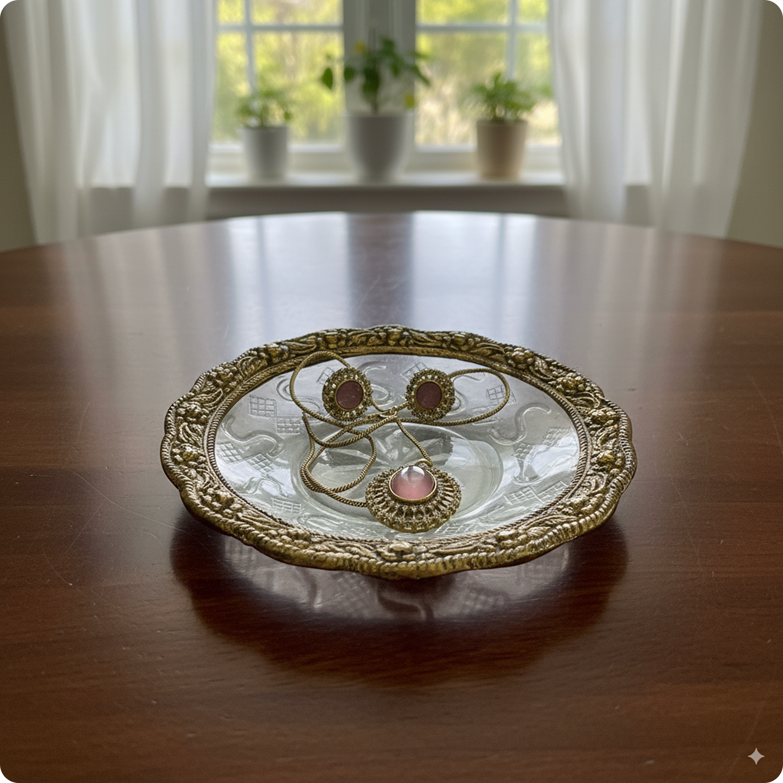 Elegant Pink Stone Pendant Necklace with Earrings – Gold-Plated Traditional Jewelry Set