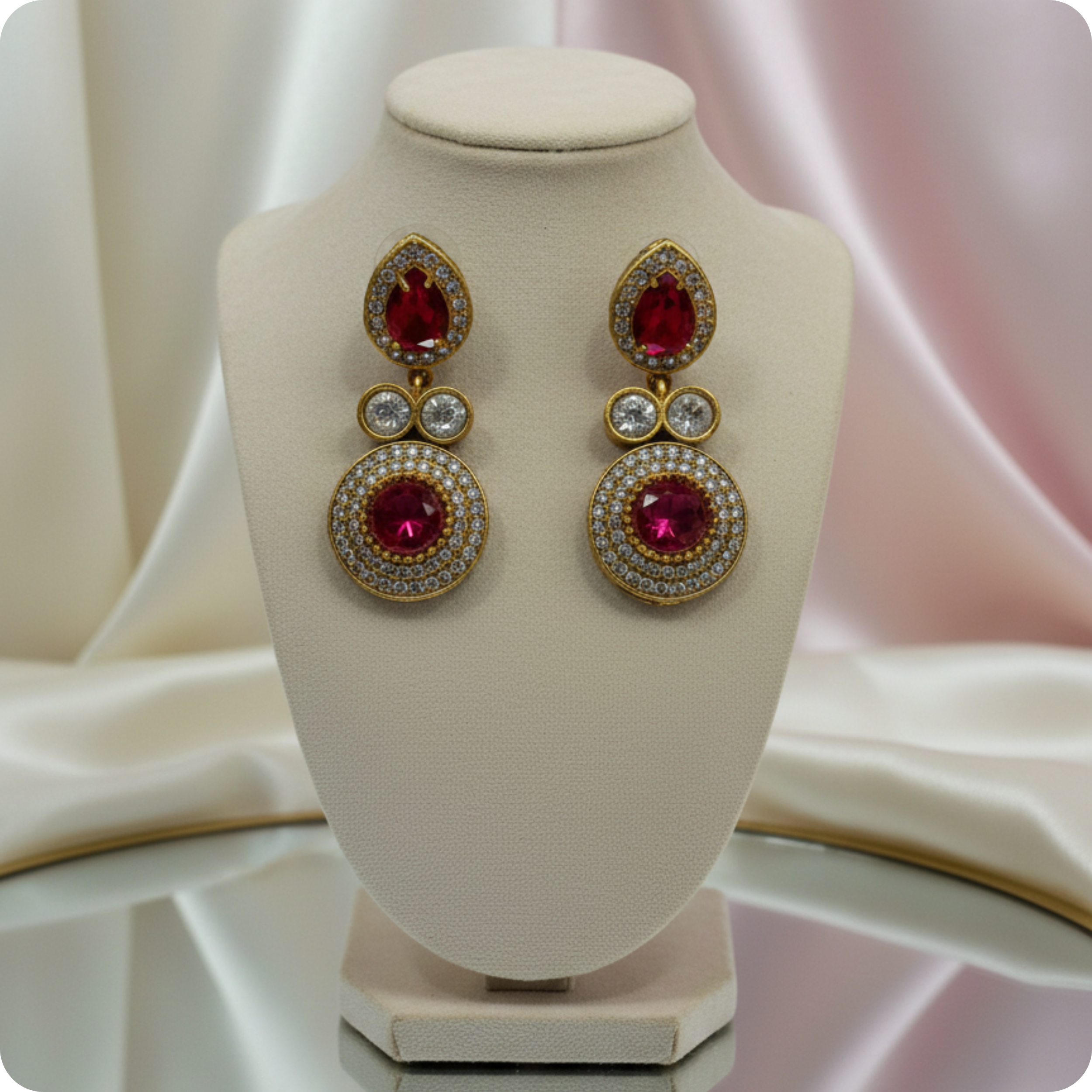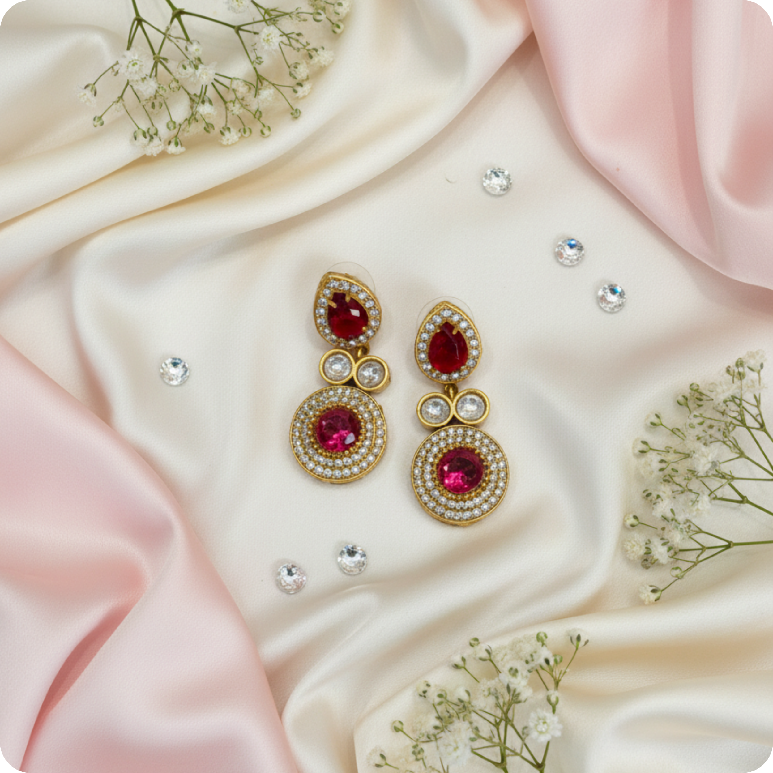 • Premium Ruby-Tone Center Stone for a bold and royal touch