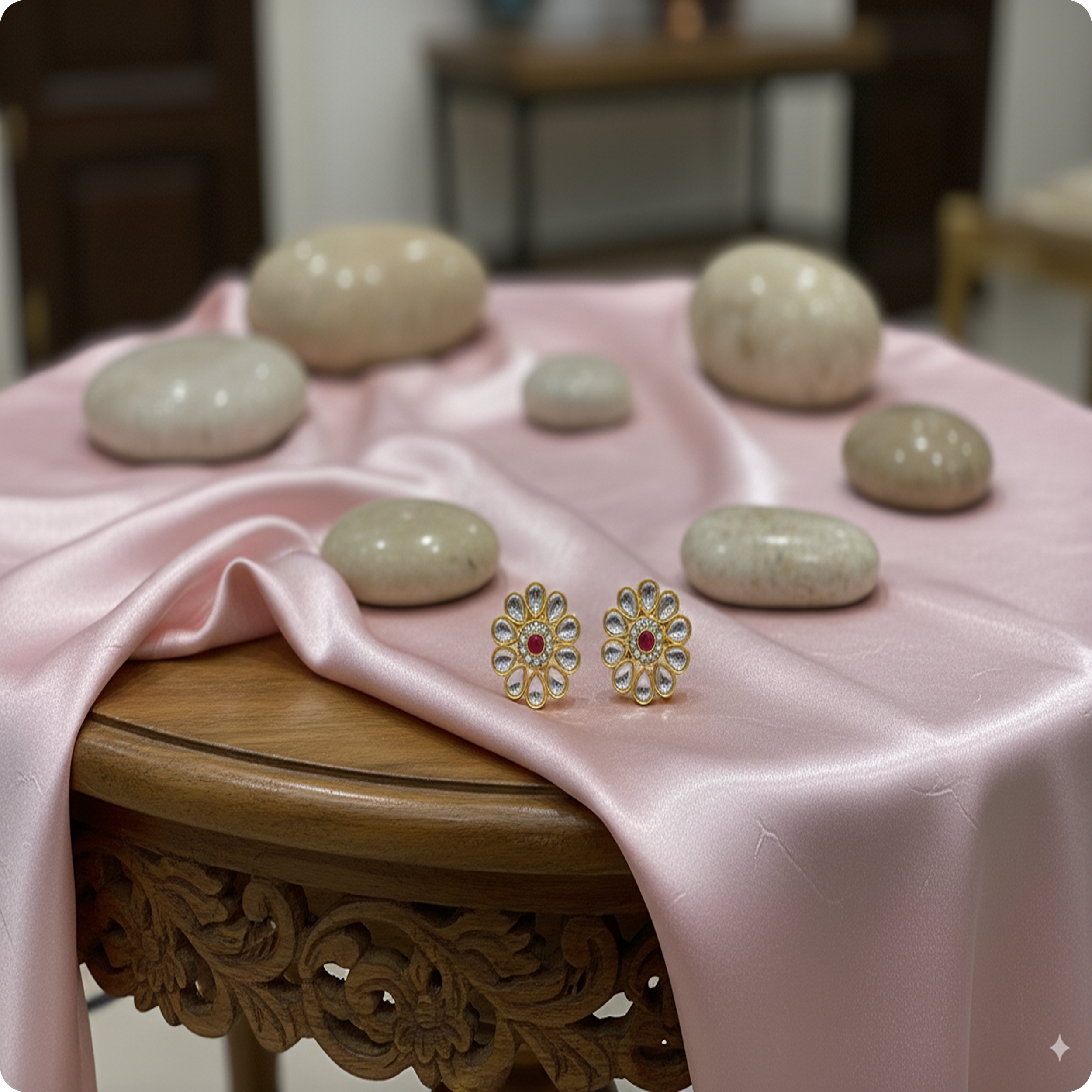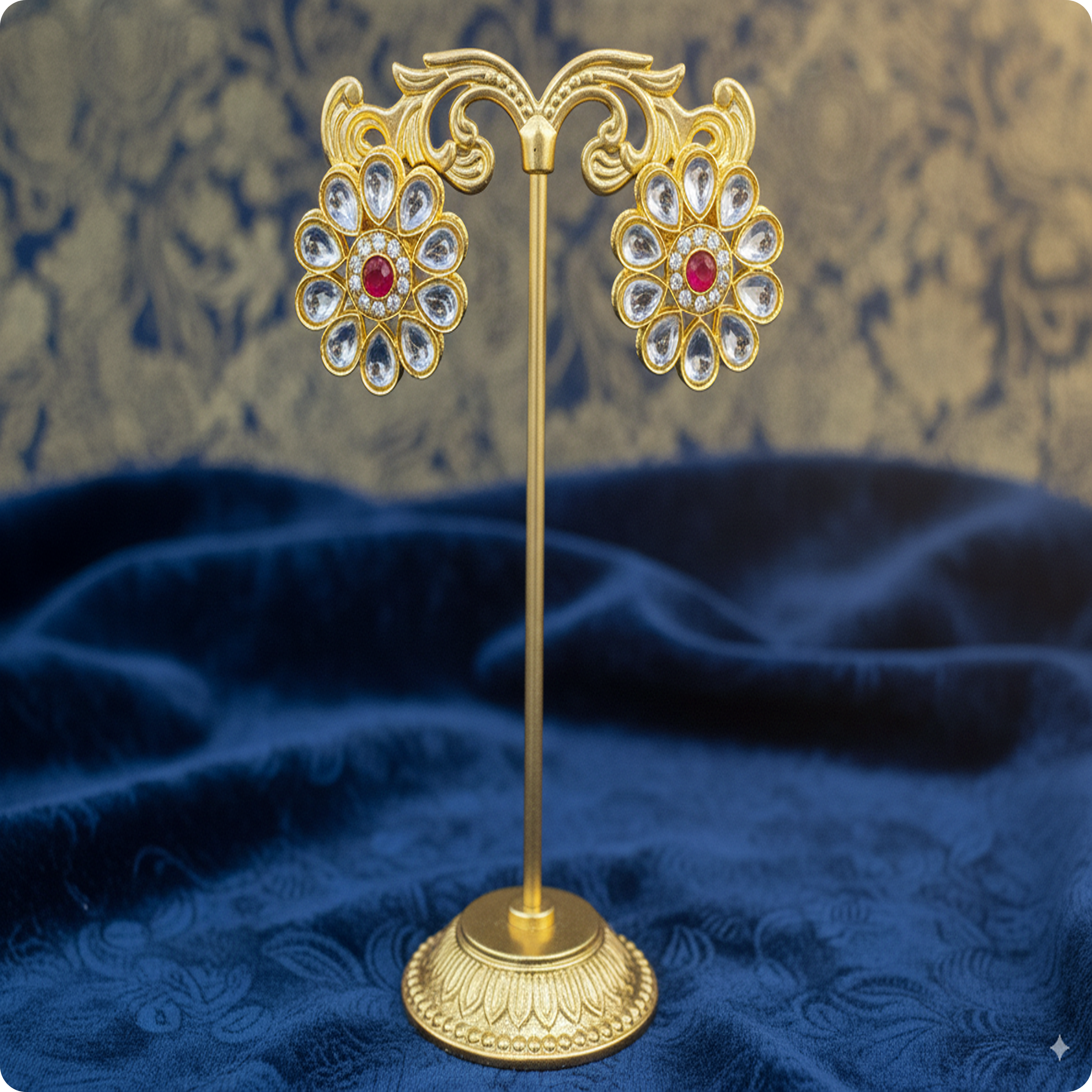 Royal Red Bloom Kundan Stud Earrings – Floral Grandeur