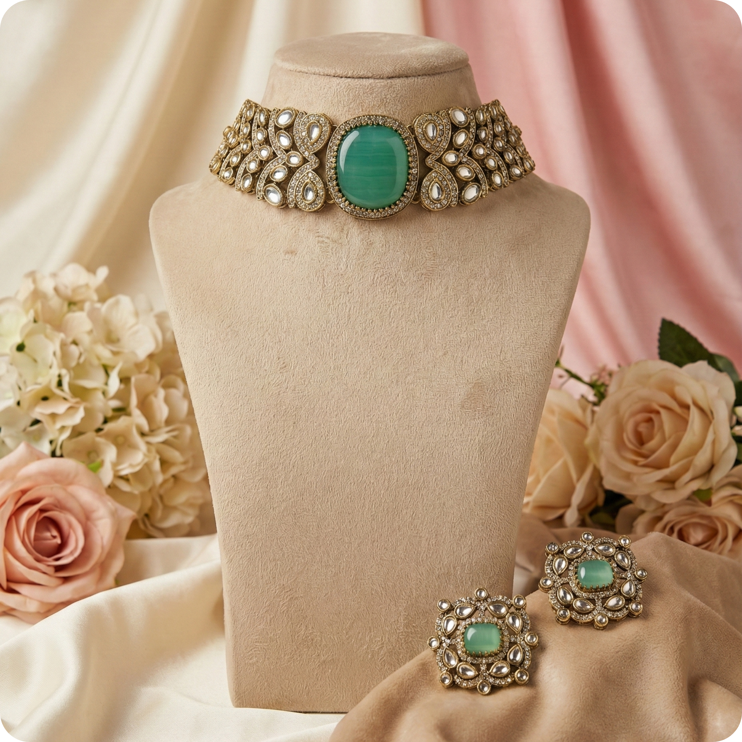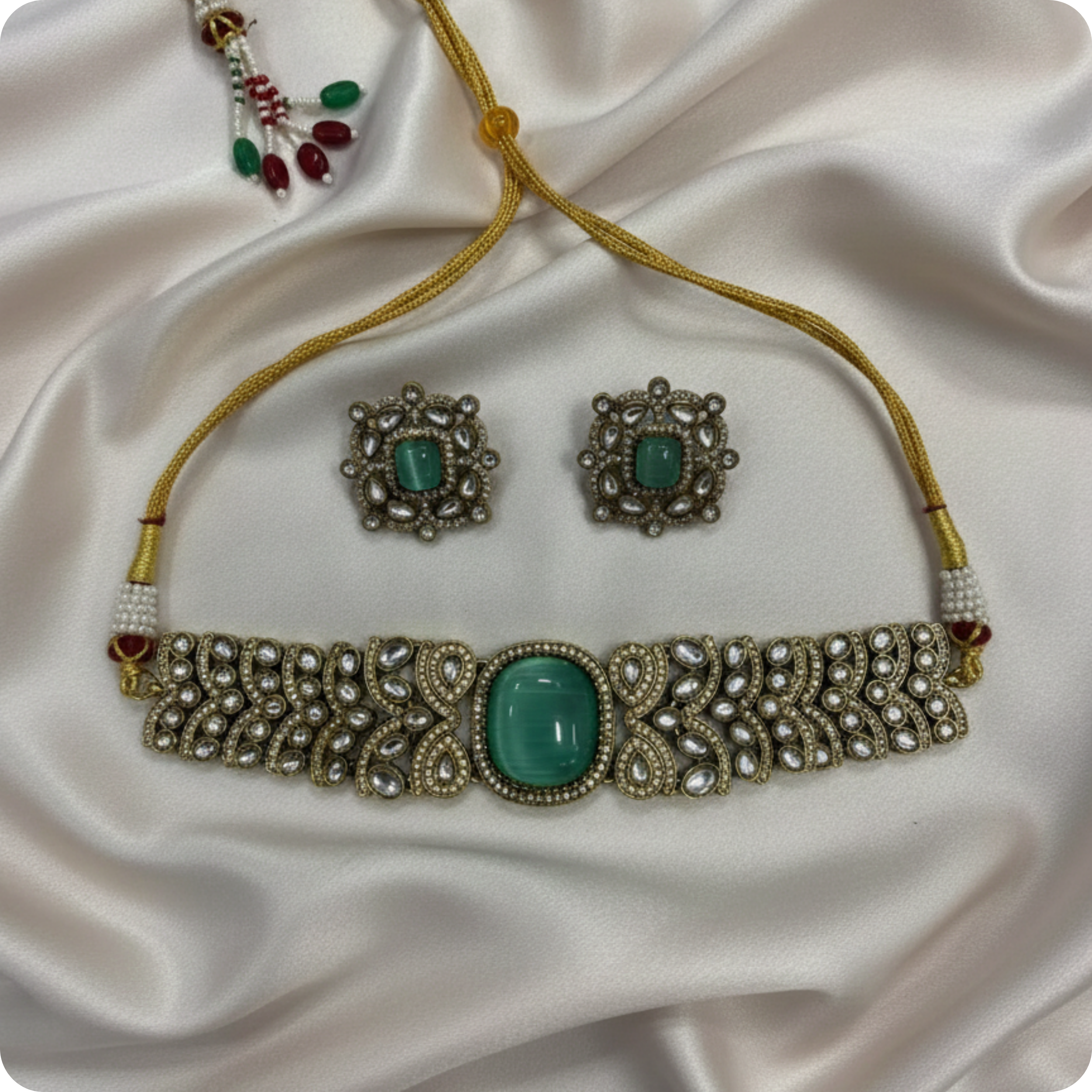 Choker Necklace Set with Mint Green Stone