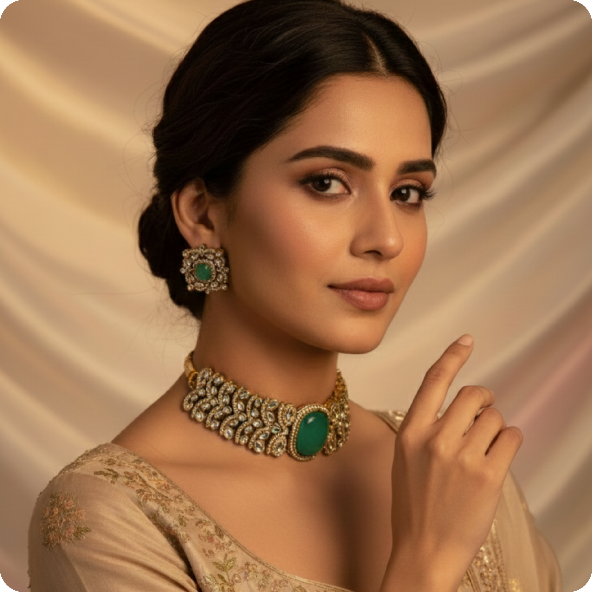 Crafted with precision and finished with gold-plated detailing, this choker adds a graceful blend of luxury and tradition to sarees, lehengas, and ethnic outfits.