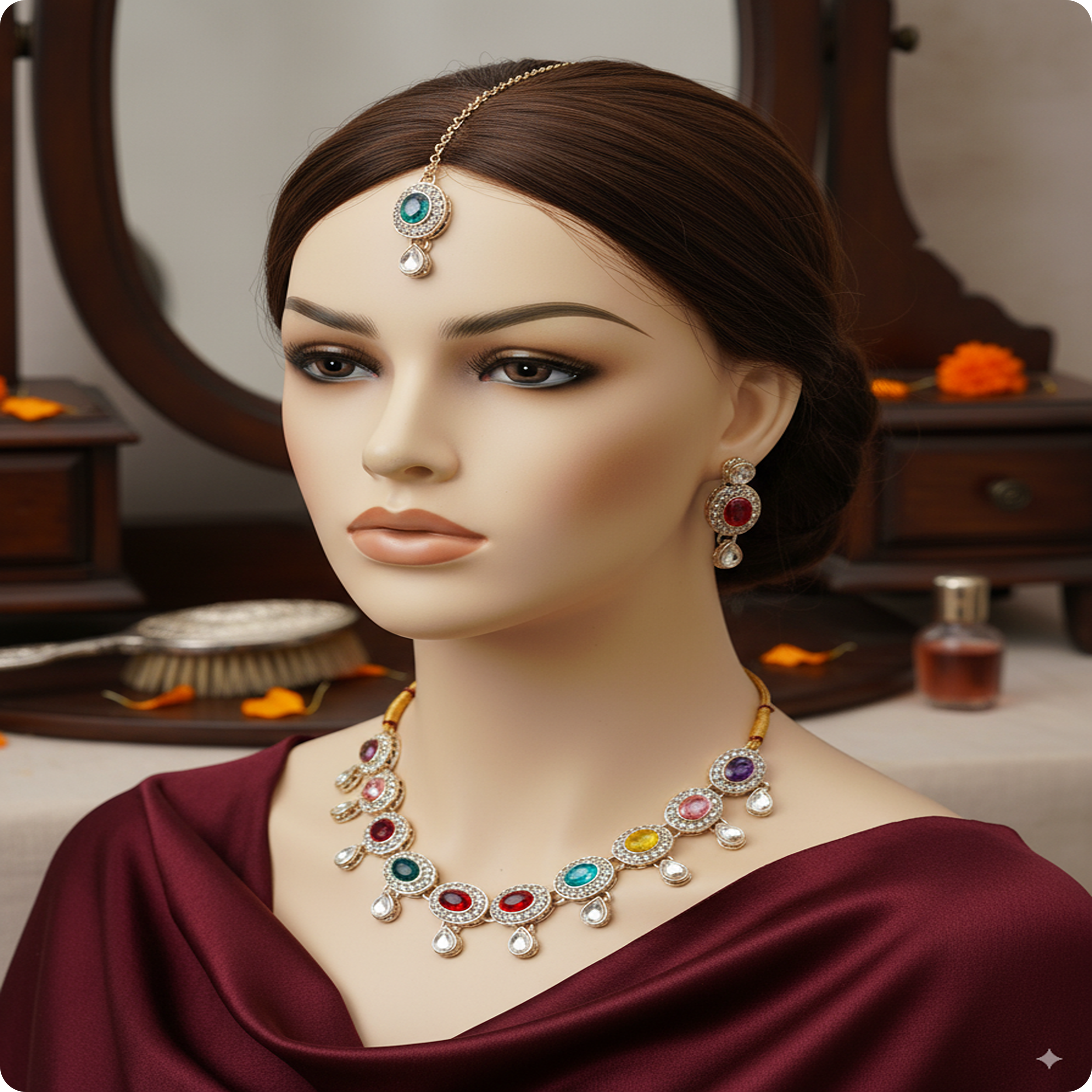 Set Includes: Necklace + Earrings + Maang Tikka