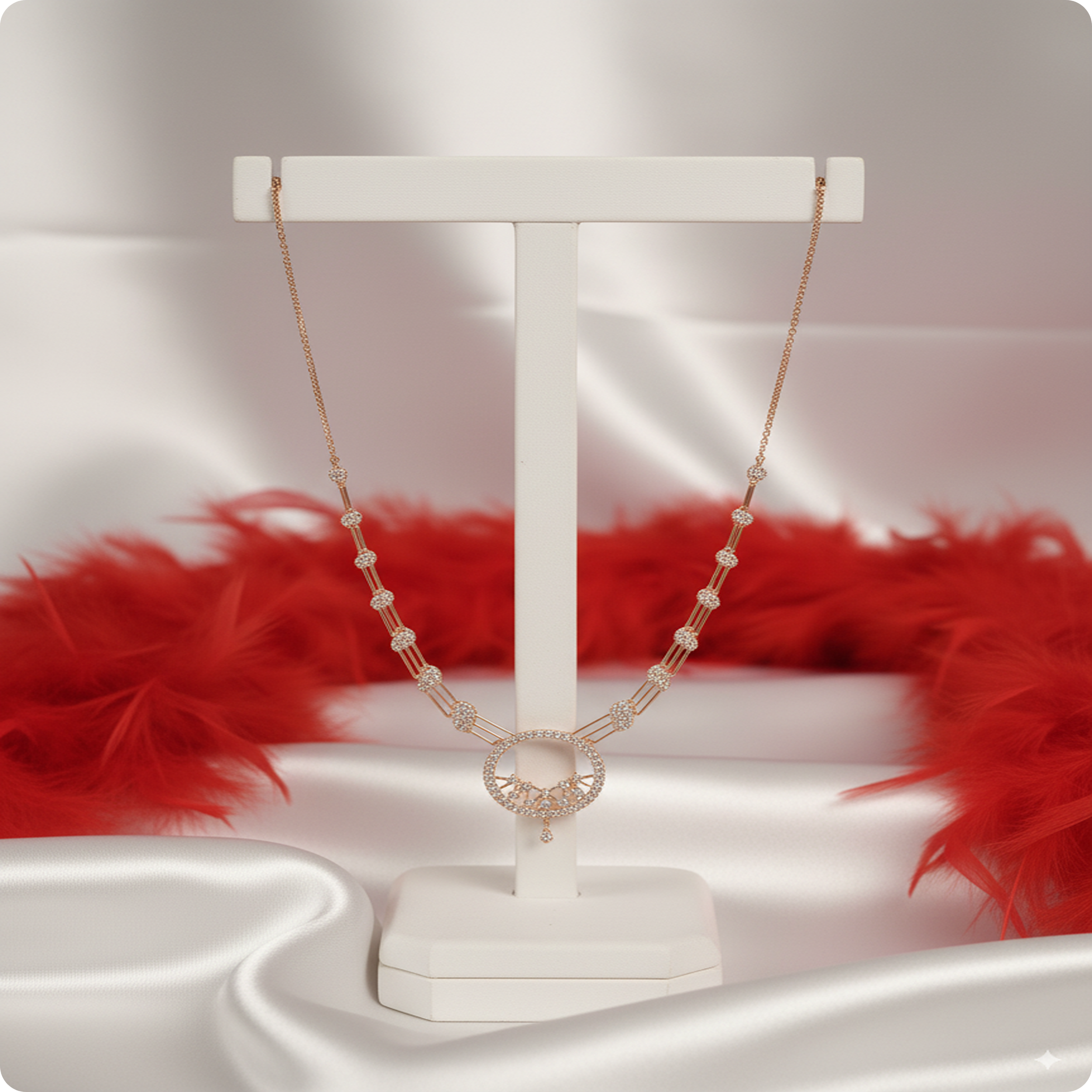 Rose Gold American Diamond Necklace Set – Elegant Circular Design with Earrings